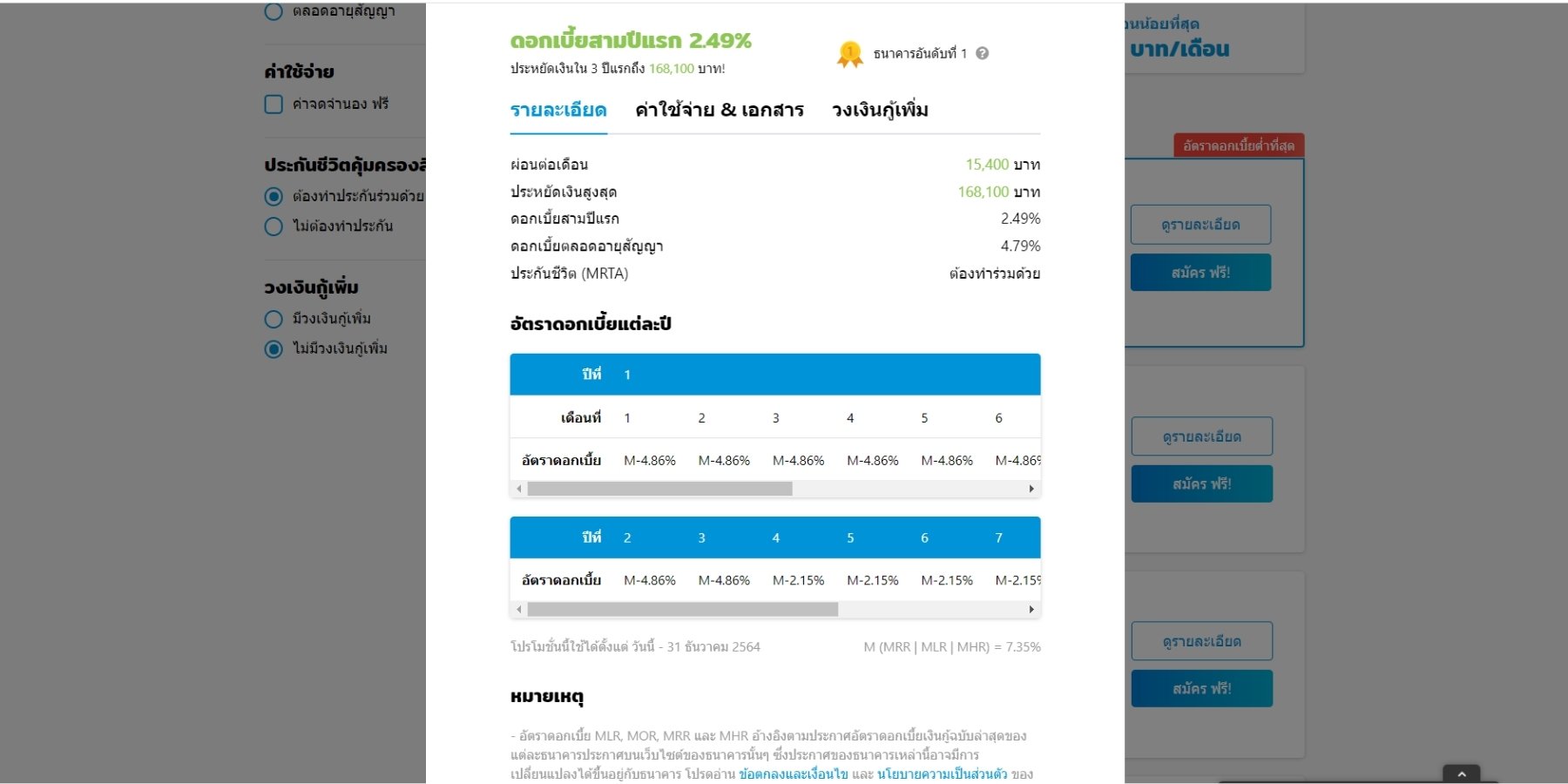 5. เวบแสดงผลให้รายละเอียด ธนาคาร อัตราดอกเบี้ยต่อปี เอกสารที่ต้องใช้ เงื่อนไขต่างๆ ( อ่านเข้าใจง่ายดีค่ะ )