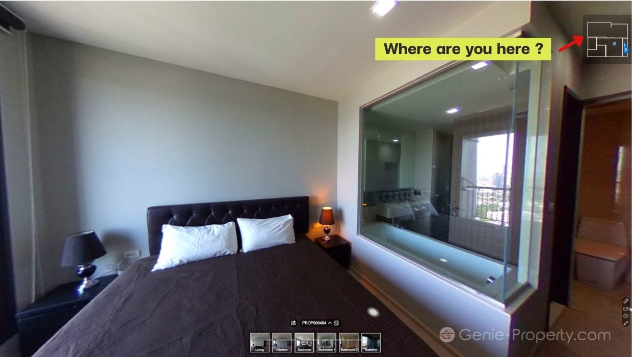 เมื่อคลิกเลือกห้องใดห้องหนึ่ง ระบบจะพาคุณเข้าสู่โหมดการสำรวจห้อง โดยมีการบอกตำแหน่งที่คุณอยู่ ณ ขณะนั้น บนแผนผังห้องได้ (View floor plan)