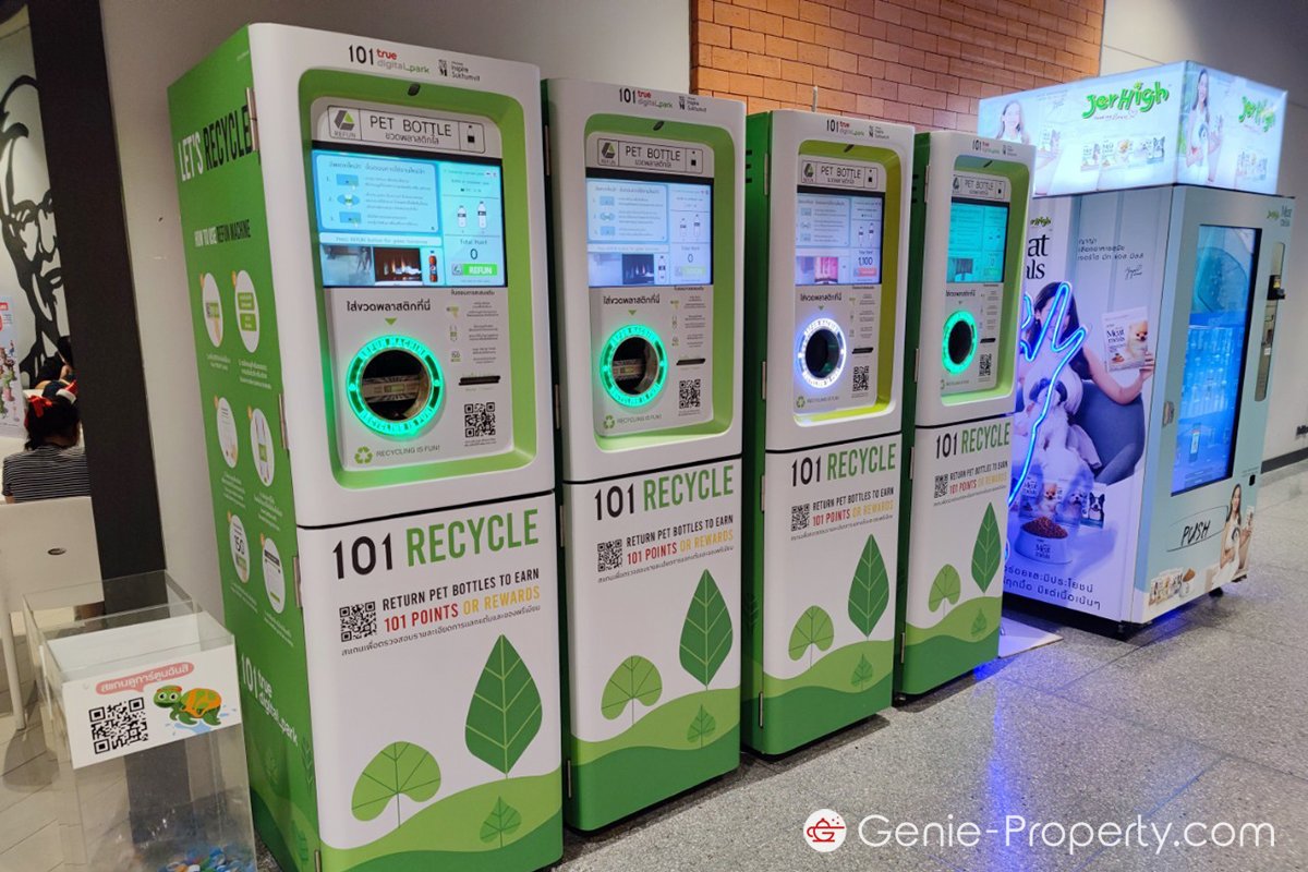 ภายในอาคาร จะตู้ Refun ขวดพลาสติก ที่ทุกคนสามารถนำขวดพลาสติกประเภท PET ไปหยอดตู้เพื่อแลกเป็นคะแนนสะสม หรือเลือกบริจาคก็ได้ค่ะ สามารถลงทะเบียนสมัครสมาชิกก่อนใช้งานได้ที่ลิงค์นี้ www.refun.com