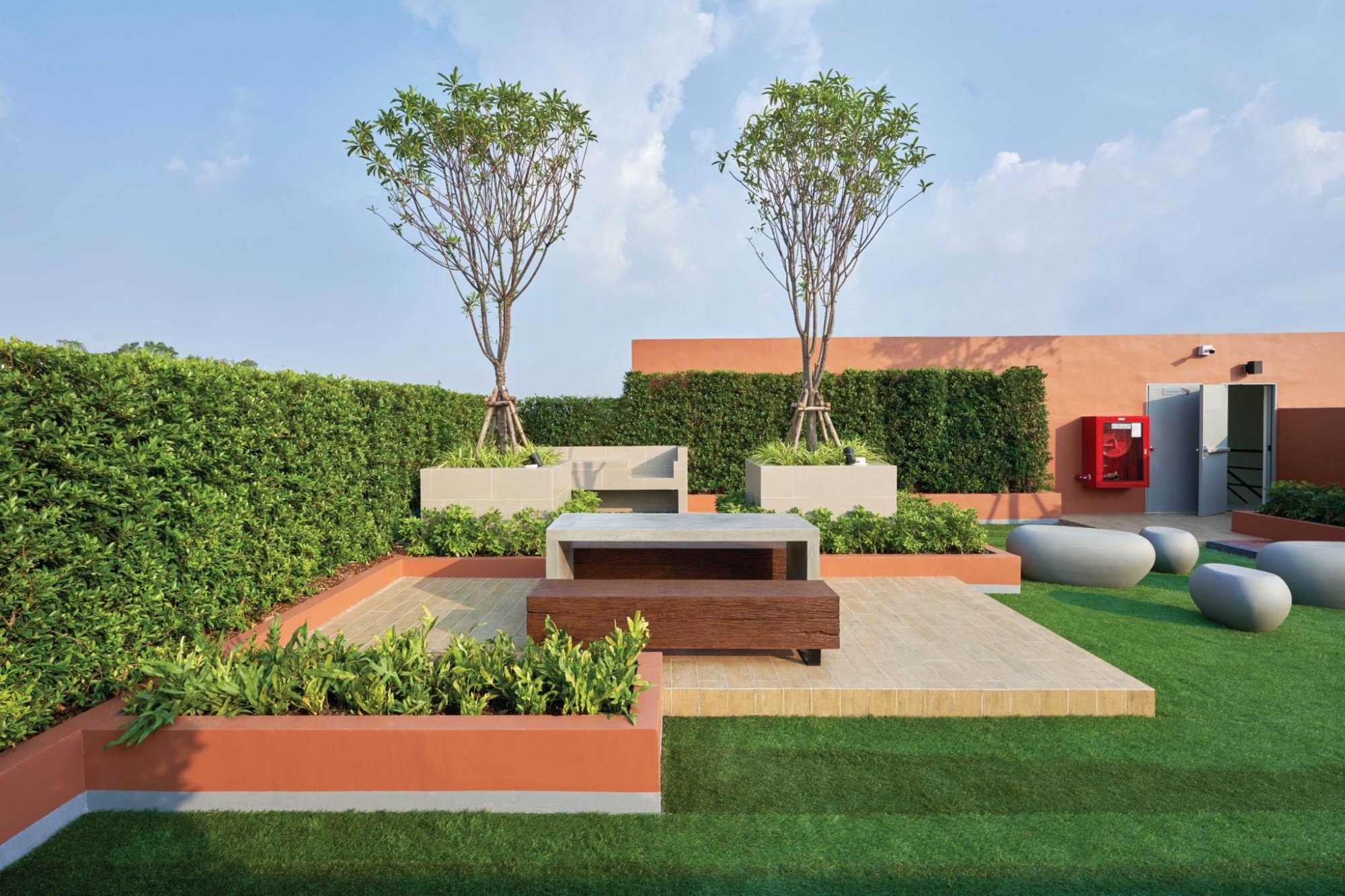 สำหรับชั้นดาดฟ้านะคะ ทางโครงการได้จัดให้เป็นพื้นที่สำหรับจัดกิจกรรมต่างๆ ไม่ว่าจะเป็น นั่งพักผ่อนชมวิว จัดปาร์ตี้ หรือ พื้นที่ออกกำลังกายกลางแจ้ง และยังมีมุมสำหรับนั่งทำงานกลางสวน คุยงานกันได้อีกด้วยค่ะ